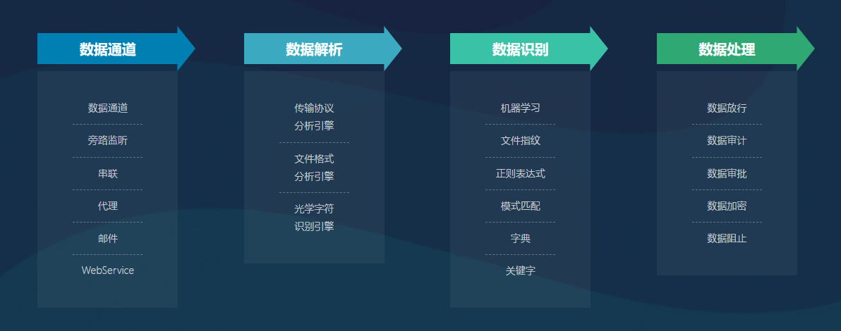 以統(tǒng)一策略為基礎(chǔ),采用深層內(nèi)容分析、對靜態(tài)數(shù)據(jù)、動態(tài)數(shù)據(jù)及