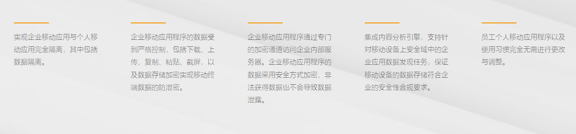 以虛擬安全域技術(shù)為關(guān)鍵基礎(chǔ)技術(shù),基于統(tǒng)一數(shù)據(jù)安全策略,從注冊設(shè)備監(jiān)控、企業(yè)應(yīng)用管理、數(shù)據(jù)