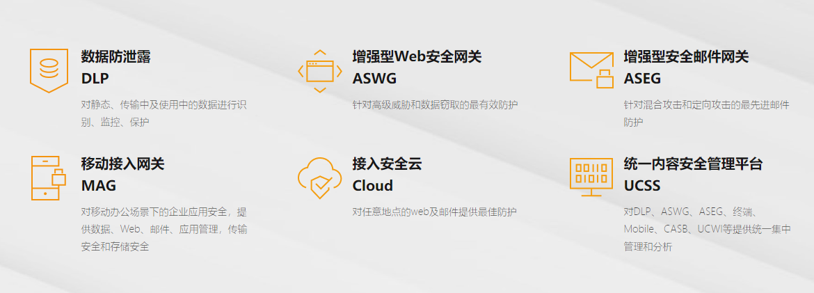 (ASEG)、Web安全網(wǎng)關(guān)(ASWG)、統(tǒng)一內(nèi)容安全終端、CASB云應(yīng)用訪問、應(yīng)用系統(tǒng)