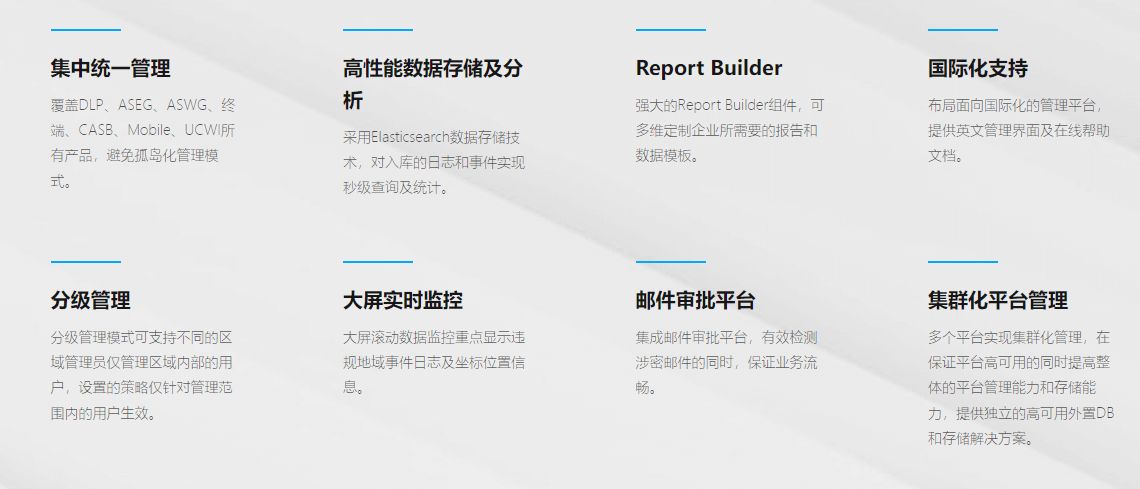 理、Web安全管理(病毒、木馬、惡意腳本等)、綜合數(shù)據(jù)防泄露深層次內(nèi)容分析、郵件惡鏈檢測等